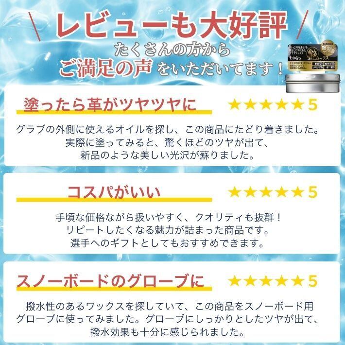 撥水・保湿効果がありますので、スキーやスノーボードの本革グローブのお手入れにもおすすめです。