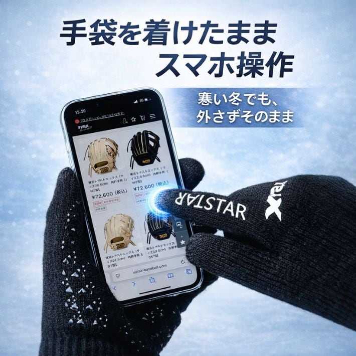 ・スマホ操作対応:指先でタッチパネル操作ができ、手袋を外す手間を軽減