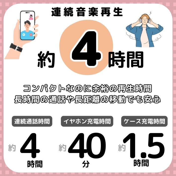 充電時間:[充電ケース]約 1.5時間 [イヤホン] 約40分間