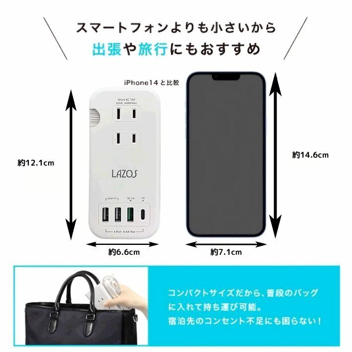 マルチ電源タップ モバイル 電源タップ コンセント usb type-c AC3口 USB4ポート 合計8.4A出力 iPhone iPad Androidスマートフォン スマホ・タブレット対応 コンセントタップ USBタップ 延長コード コンパクト 旅行 出張 テレワーク ホワイト ブラック おしゃれ 送料無料