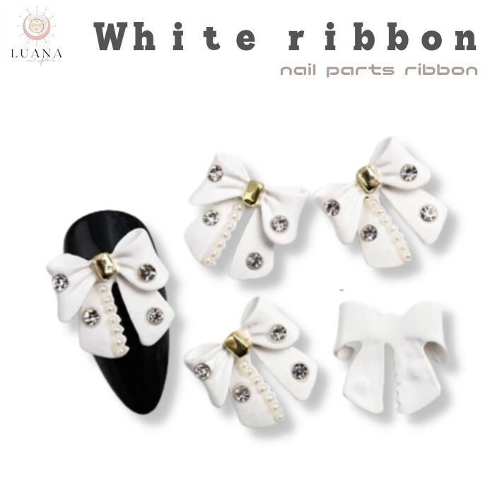 ネイルパーツ ホワイトリボン キラキラ ストーン ジェルネイル セルフネイル nail 2個入り ハンドメイド DIY リボン ネイルアート デコレーション 立体 3D デコパーツ 白 パーツ リボンパーツ ビジューパーツ 韓国 おしゃれ