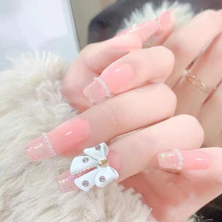ネイルパーツ ホワイトリボン キラキラ ストーン ジェルネイル セルフネイル 2個入り nail ハンドメイド DIY リボン ネイルアート デコレーション 立体 3D デコパーツ 白 パーツ リボンパーツ ビジューパーツ 韓国 おしゃれ