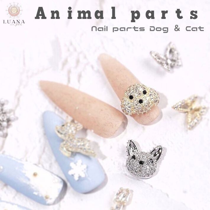ネイルパーツ 犬 猫 キラキラ 2個 アニマル 動物 cat dog トイプードル 大きい 3d ネイル 立体 デコパーツ ハンドメイド セルフネイル ネイルアート ジェルネイル ラインストーン DIY かわいい 韓国 ネイル用品 個性的