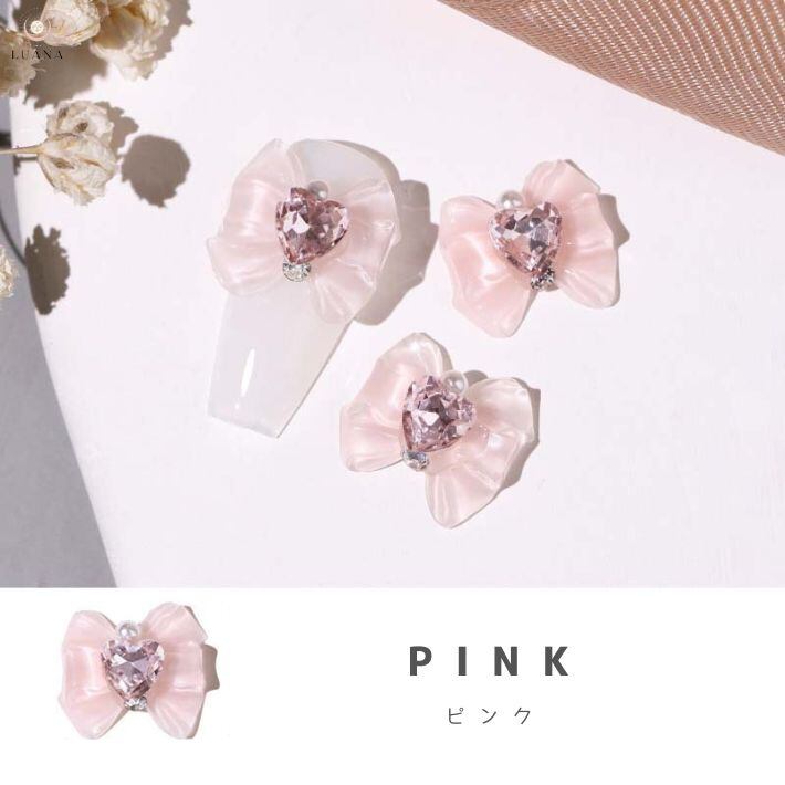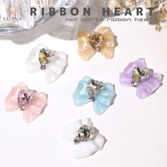 リボンにハートストーンがついているとても可愛いネイルパーツです♪