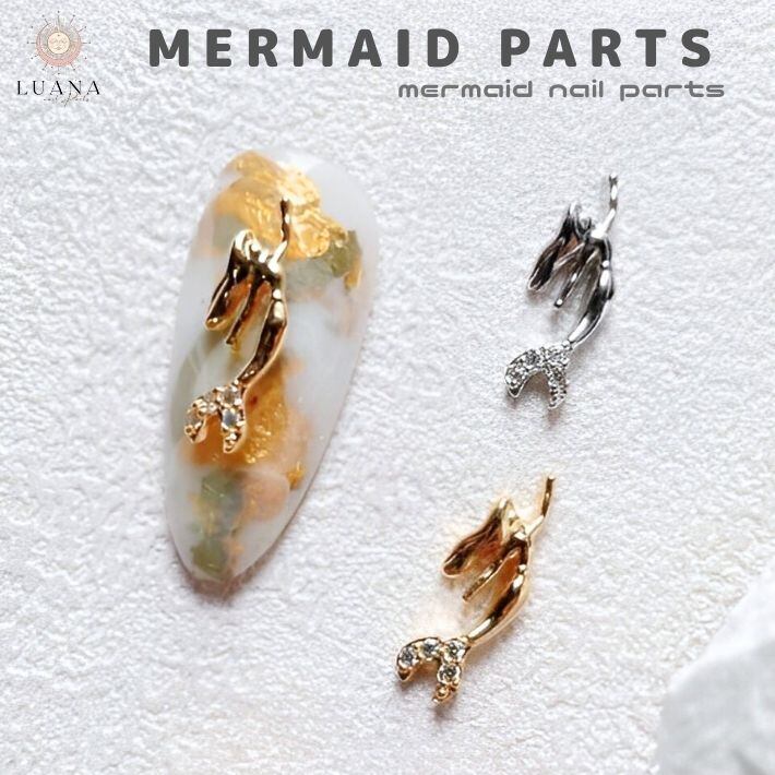 ネイルパーツ マーメイド キラキラ 2P 人魚 夏 ビジュー ジルコニア 3D 夏 ネイル ジェルネイル ゴールド シルバー デコパーツ ジュエリー ネイルアート セルフネイル ギャル 人気 流行 ハンドメイド 個性的 かわいい 韓国 おしゃれ 金 銀 プレゼント