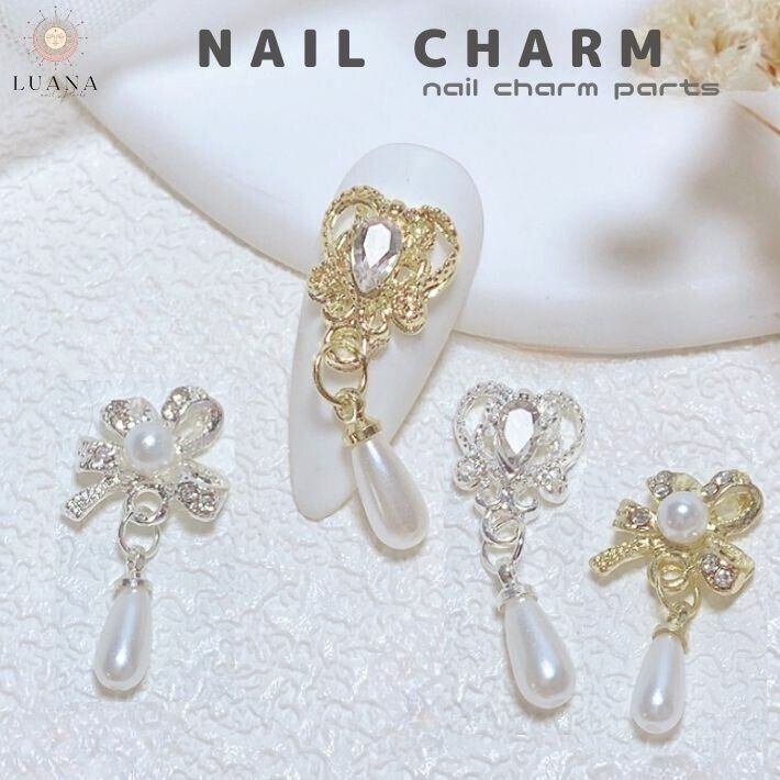 ネイルパーツ パール チャーム 2個 キラキラ 花 ハート ビジュー ジルコニア ネイル ジェルネイル ゴールド シルバー フラワー ゆらゆら パーツ ネイルアート セルフネイル ギャル 人気 流行 ハンドメイド 個性的 かわいい 韓国 おしゃれ