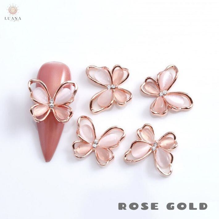 ネイルパーツ 蝶々 2個 バタフライ 蝶 ジェルネイル キラキラ デコパーツ ジュエリー ネイルアート メタル シェル ストーン ホワイト ピンク ゴールド セルフネイル ギャル ネイル 個性的 かわいい 韓国 おしゃれ 可愛い