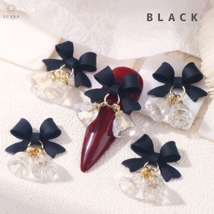 ネイルパーツ ベル リボン 2個 キラキラ クリスマス ゴールド シルバー オーロラ 蝶 冬 ピンク ブラック ホワイト 揺れる パーツ ゆめかわ 可愛い 3D ジェルネイル デコパーツ ネイル セルフネイル ギャル 人気 流行 かわいい 韓国 おしゃれ プレゼント ポイント