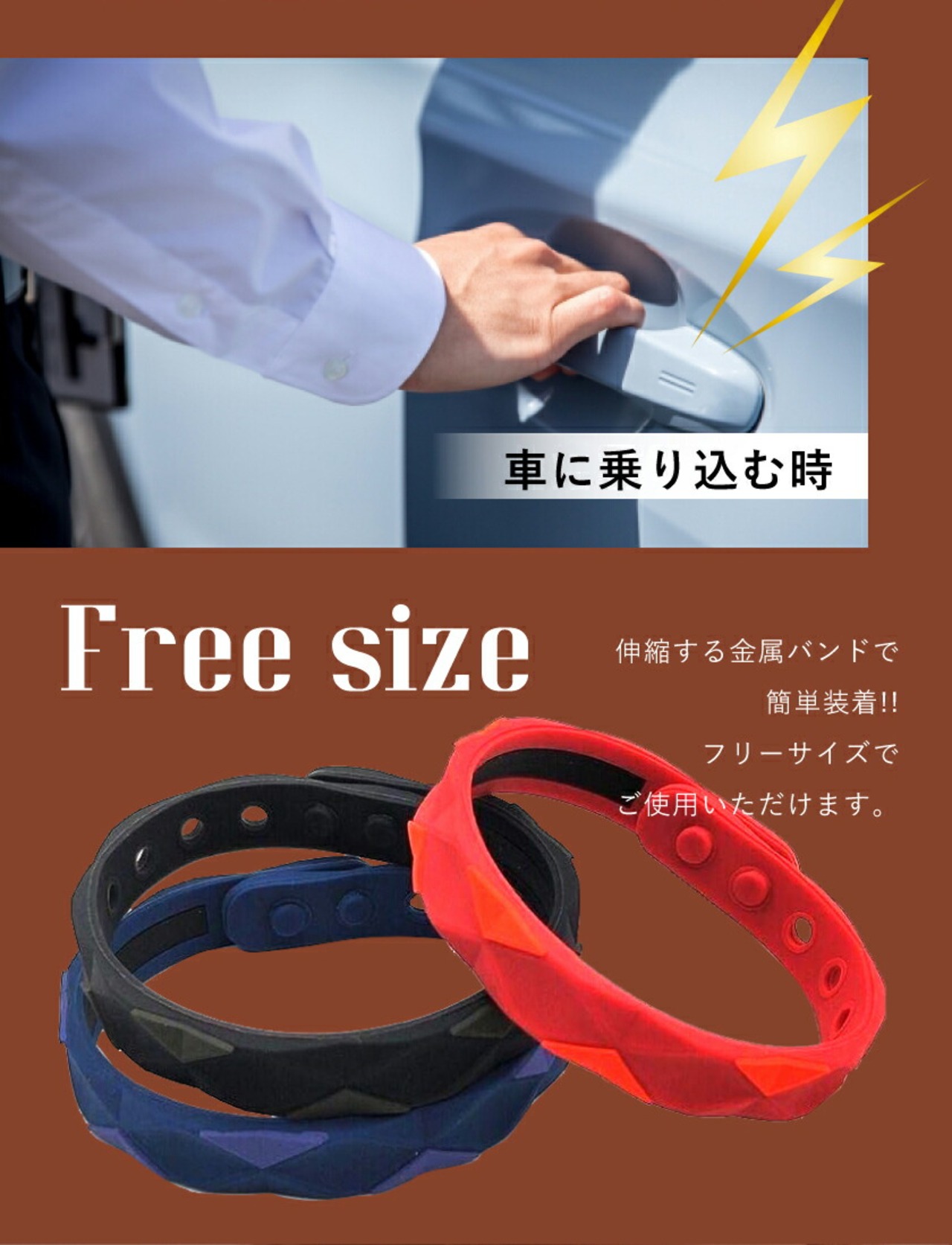 サイズ調整できるシリコンバンドで簡単装着!!