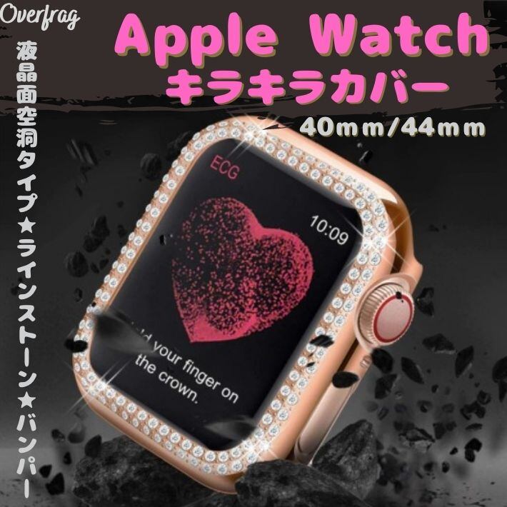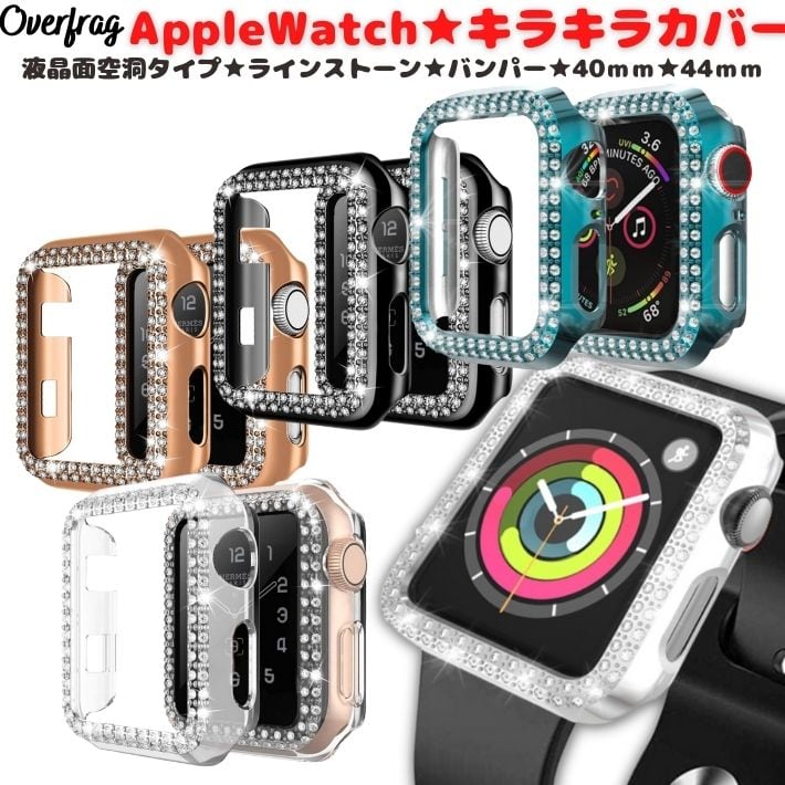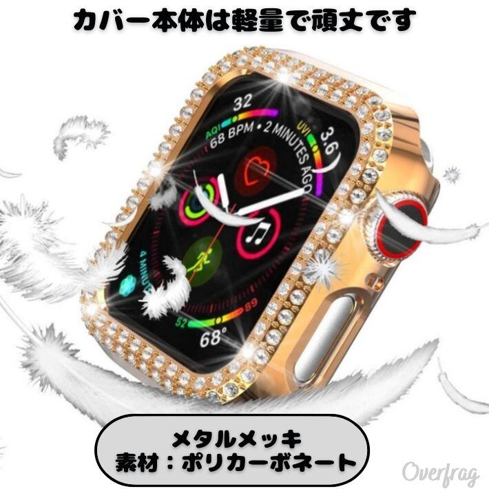 アップルウォッチ カバー キラキラ バンパー カバー ケース PCカバー ラインストーン ストーン クリスタル メタル 風 耐衝撃 SE Series 6 5 4 44mm 40mm Apple Watch 簡単装着 側面保護 軽量 かわいい おしゃれ レディース 送料無料