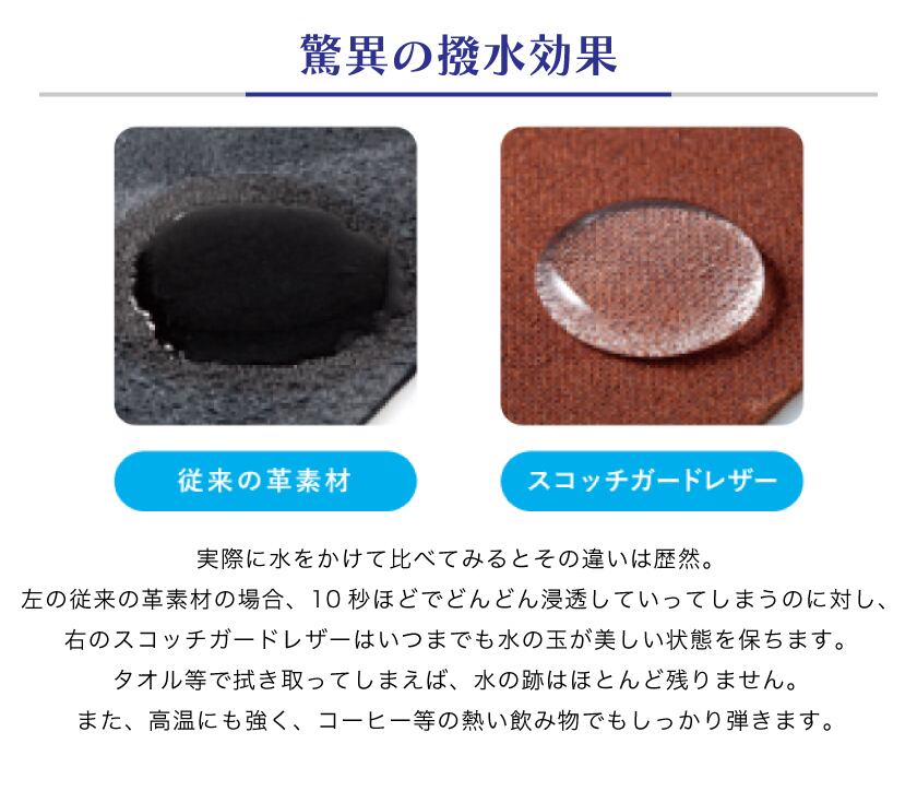スコッチガードとは、3M社が開発・展開する繊維・皮革製品に撥水・撥油・防汚効果を付与する保護剤です。