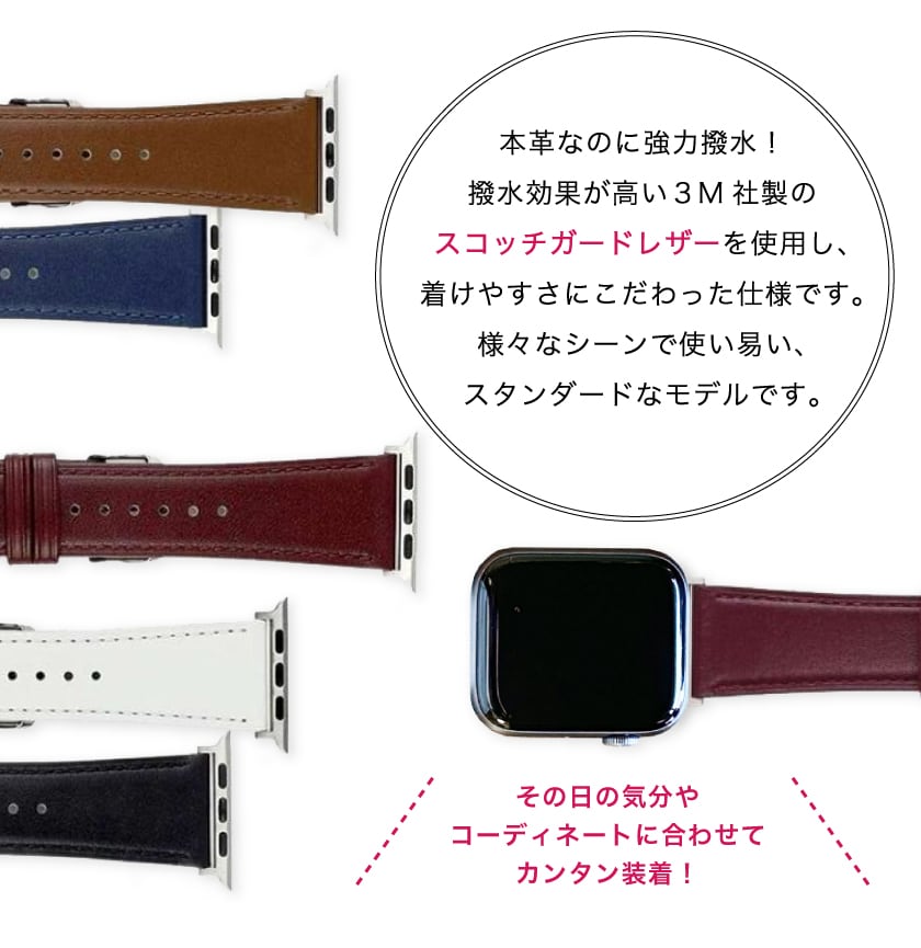 アップルウォッチ バンド ベルト ゴルフ スポーツ 撥水 防水 革 本革 レザー 3M スコッチガード 高級 高品質 apple watch band 7 6 5 4 3 SE 42mm 44mm 45mm おしゃれ 撥油 防汚効果 表面防水 裏面防水 快適 清潔 着用 バンビ BAMBI RWM021 記念日 誕生日 プレゼント