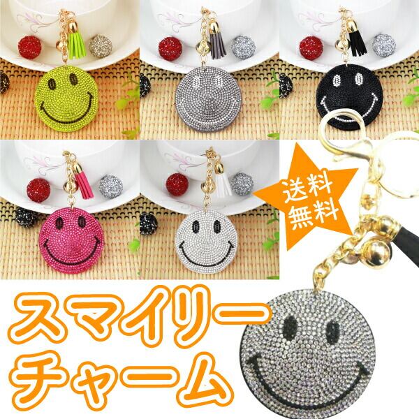 スマイル ニコちゃんチャーム アクリルストーン キラキラ キーホルダー イエロー/ホワイトブラック/ローズ/シルバー/ブラック/ホワイト 顔5.7cm×厚み2cm×タッセル約4cm、全長15cm rdb0002