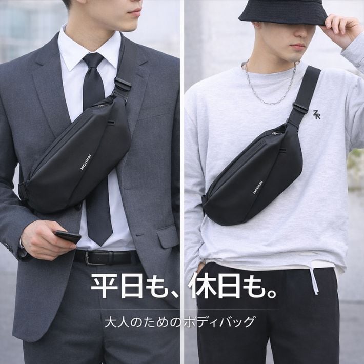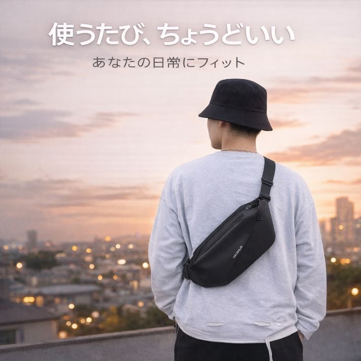 毎日使うバッグだからこそ、機能性とデザイン性のバランスを重視。撥水加工を施したナイロン素材を使用し、雨の日の外出や自転車移動にも配慮したメンズボディバッグです。通勤・通学から休日のお出かけまで、幅広いシーンで活躍します。
