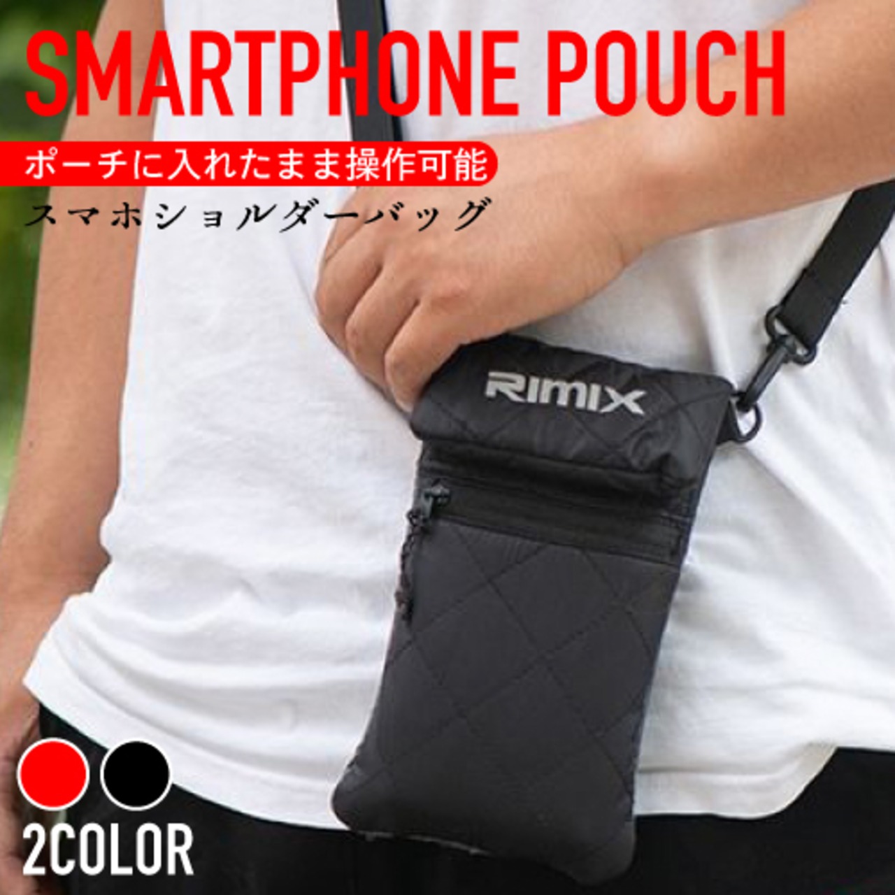 リミックス スマホポーチ ポシェット ポーチ ショルダー バッグ 斜めがけ 軽量 軽い 防水 撥水 透明 ポケット スマホ 入る ゴルフ ラウンド ナビ アプリ スマホ操作 アウトドア キャンプ お出かけ スキー スノボ 雪山 ブラック レッド 黒 赤 メンズ レディース 送料無料