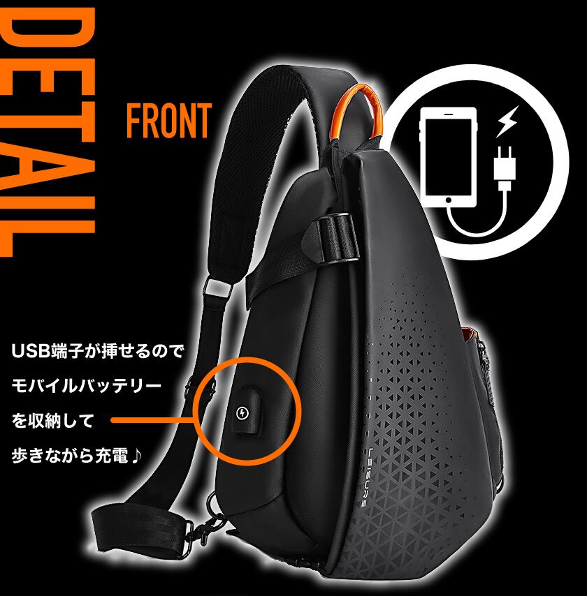 USB 充電 ボディバッグ バックバック ショルダーバッグ メンズ レディース 左右対応 斜めがけ 大容量 肩掛け 携帯充電 撥水 ipad対応 通勤 通学 スキー スノーボード スケボー アウトドア ボディーバッグ 国内 海外 旅行 ギア モバイル バッグ おしゃれ あす楽 送料無料