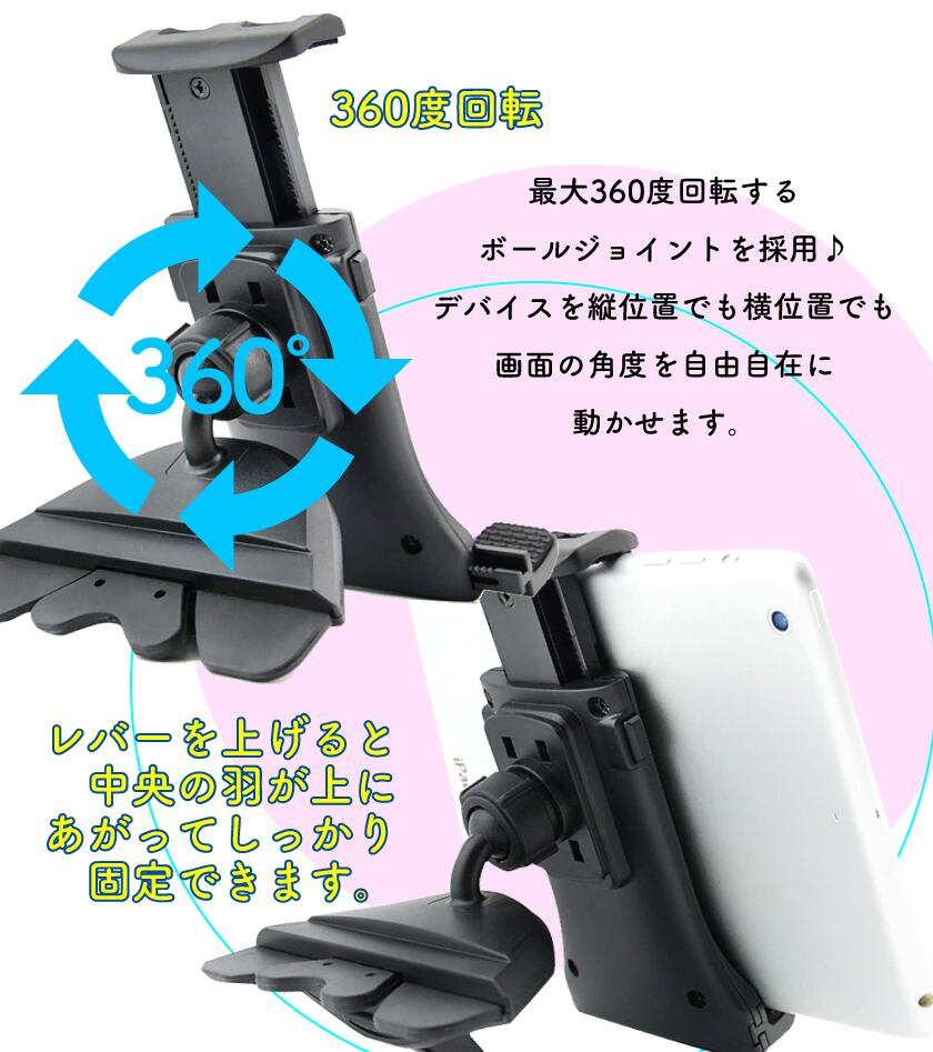 タブレットホルダー 車載ホルダー CDスロット取付型ホルダー 4 〜 12インチ 360° 回転 タブレット スマートフォン iPad iPhone トヨタ 日産 ホンダ マツダ 国産車 ベンツ アウディ 外車 対応 ホルダースタンド スマートフォン車載ホルダー スマホ固定ホルダー