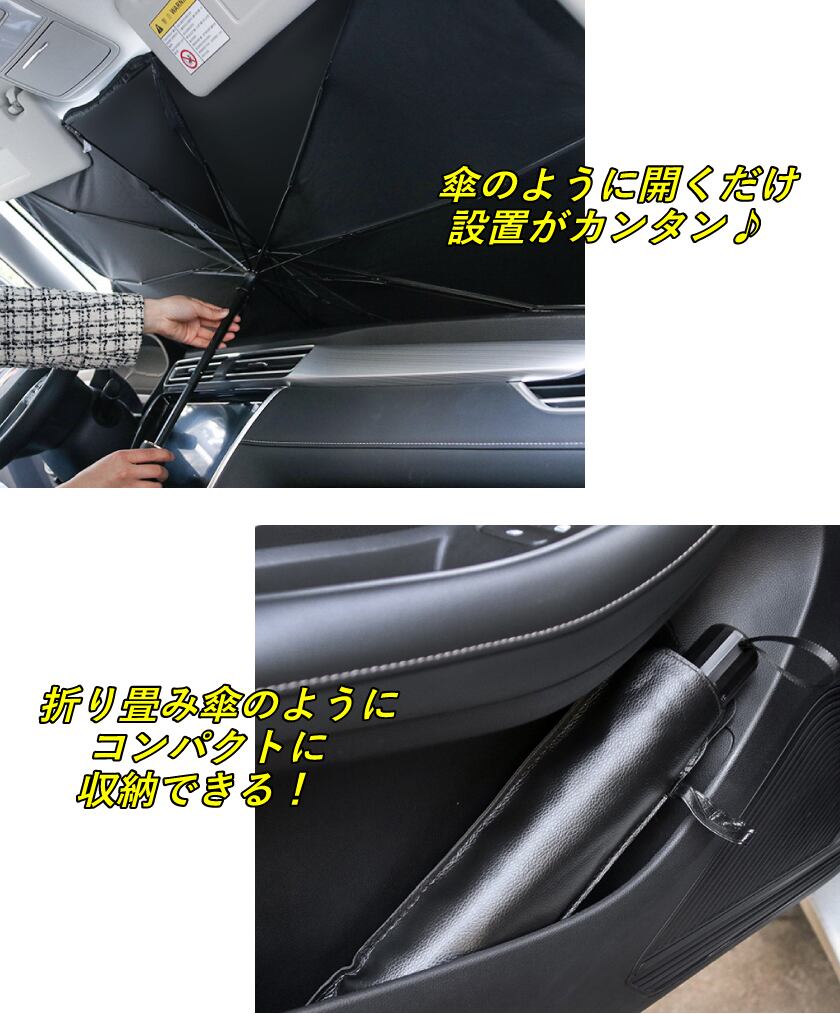 車のフロントガラス用の折り畳み傘式のサンシェード。