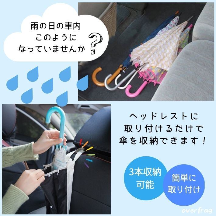 車用 アンブレラケース 傘カバー 傘収納 傘入れ 傘ホルダー 折りたたみ傘 カー用品 車用品 防水 保護 車 ヘッドレスト 簡単設置 ネイビー 梅雨 雨対策 プレゼント