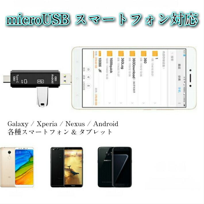 OverFrag Type-c マルチカードリーダー ライター USB マイクロUSB MicroUSB microSDカード 高速 小型 マイクロSD OTG カード HUB USB 2.0 MicroSD Android アンドロイド スマートフォン スマホ アダプター 送料無料