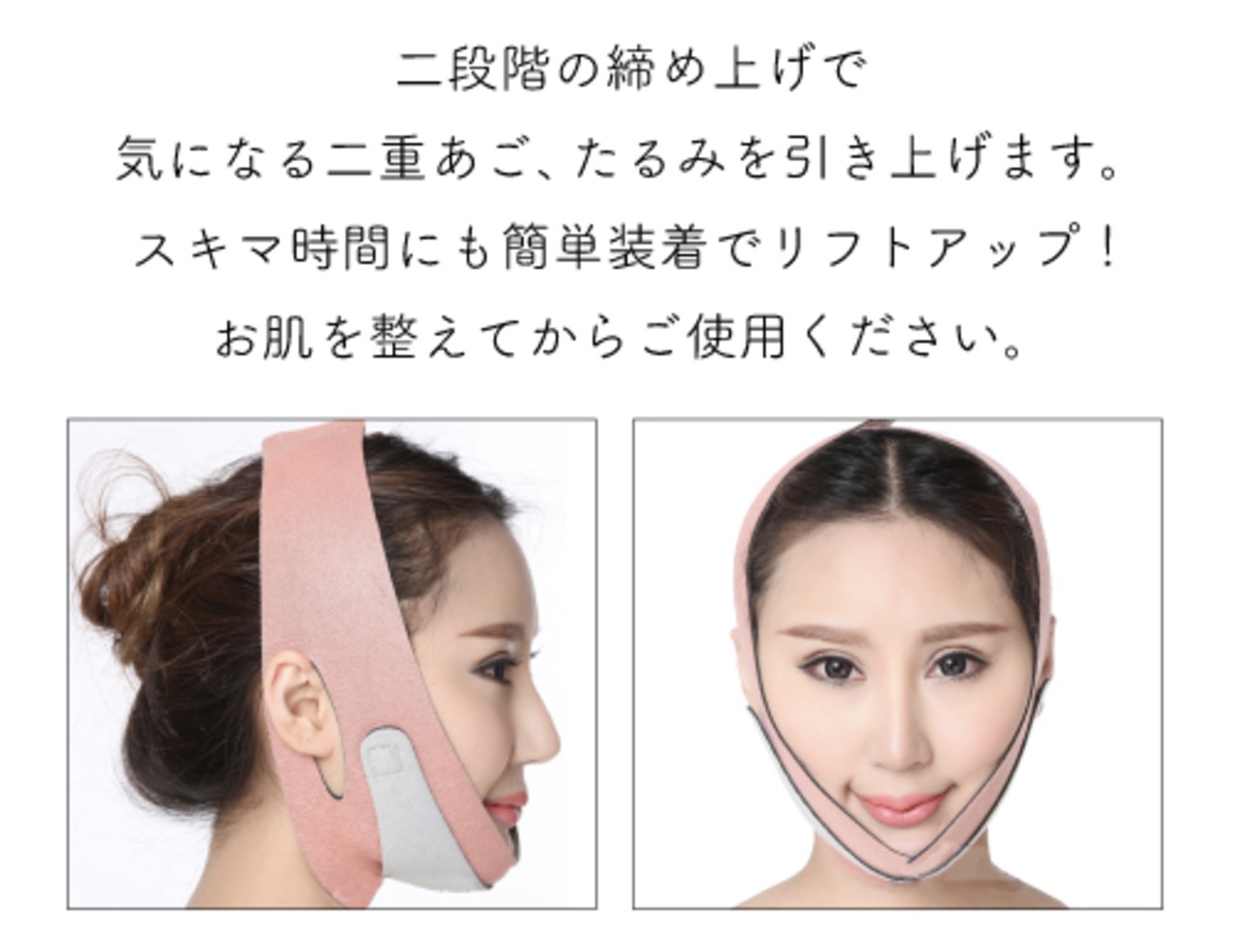 2重ベルトでキュキューッと頬や顔全体のたるんだ引き上げ、あご下のたるみも引き上げる小顔 リフトアップ エクササイズ 発汗 バンド コルセット 歯ぎしり ますくです!
