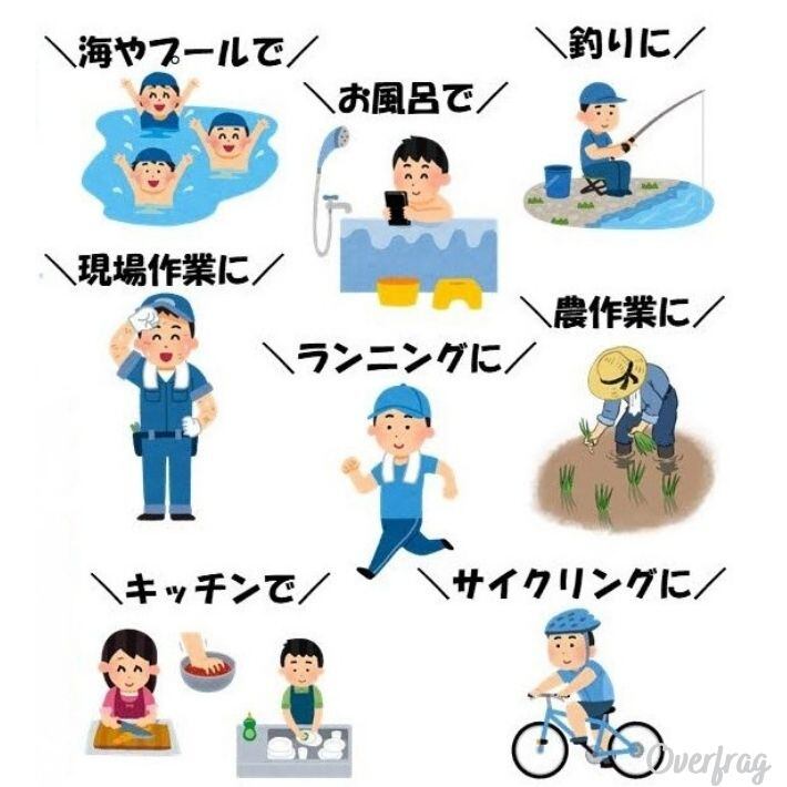 ・耐水温度:-10℃〜45℃ なのでプールからお風呂まで様々なシーンで使えます。