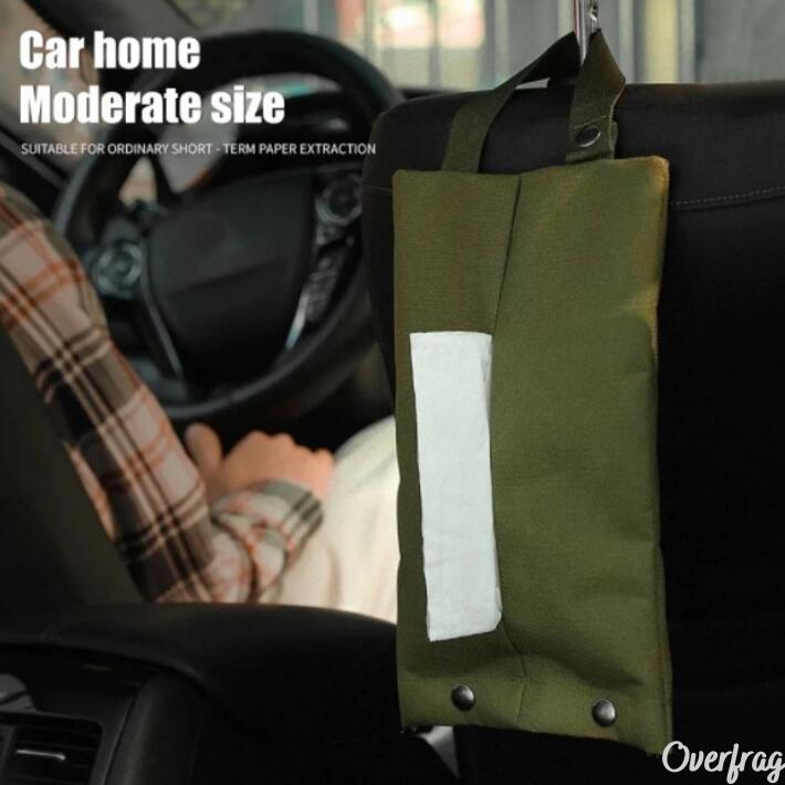 車載用のティシュケースとしても便利、ヘッドレストに吊り下げもできます。