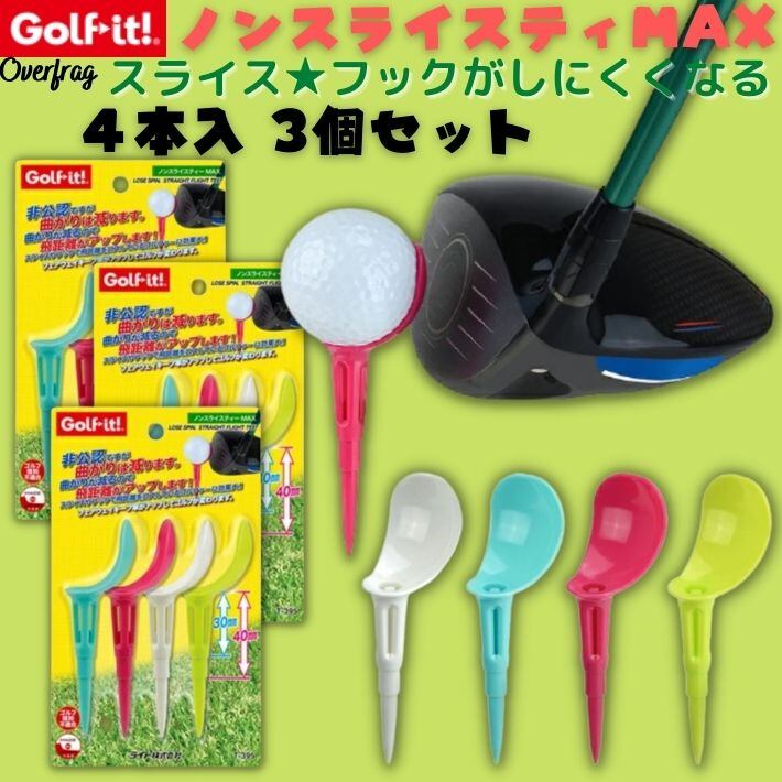 【3個セット】 ゴルフ ティー ノンスライスティー MAX ティー4本入り 3セット スライス フック 防止 ティー ロングティー ドライバーティー 高さ 全長100mm 段付き フェアウェイキープ率 アップ カラー ティー ゴルフティー 飛距離アップ 飛ぶ 初心者 ゴルファー
