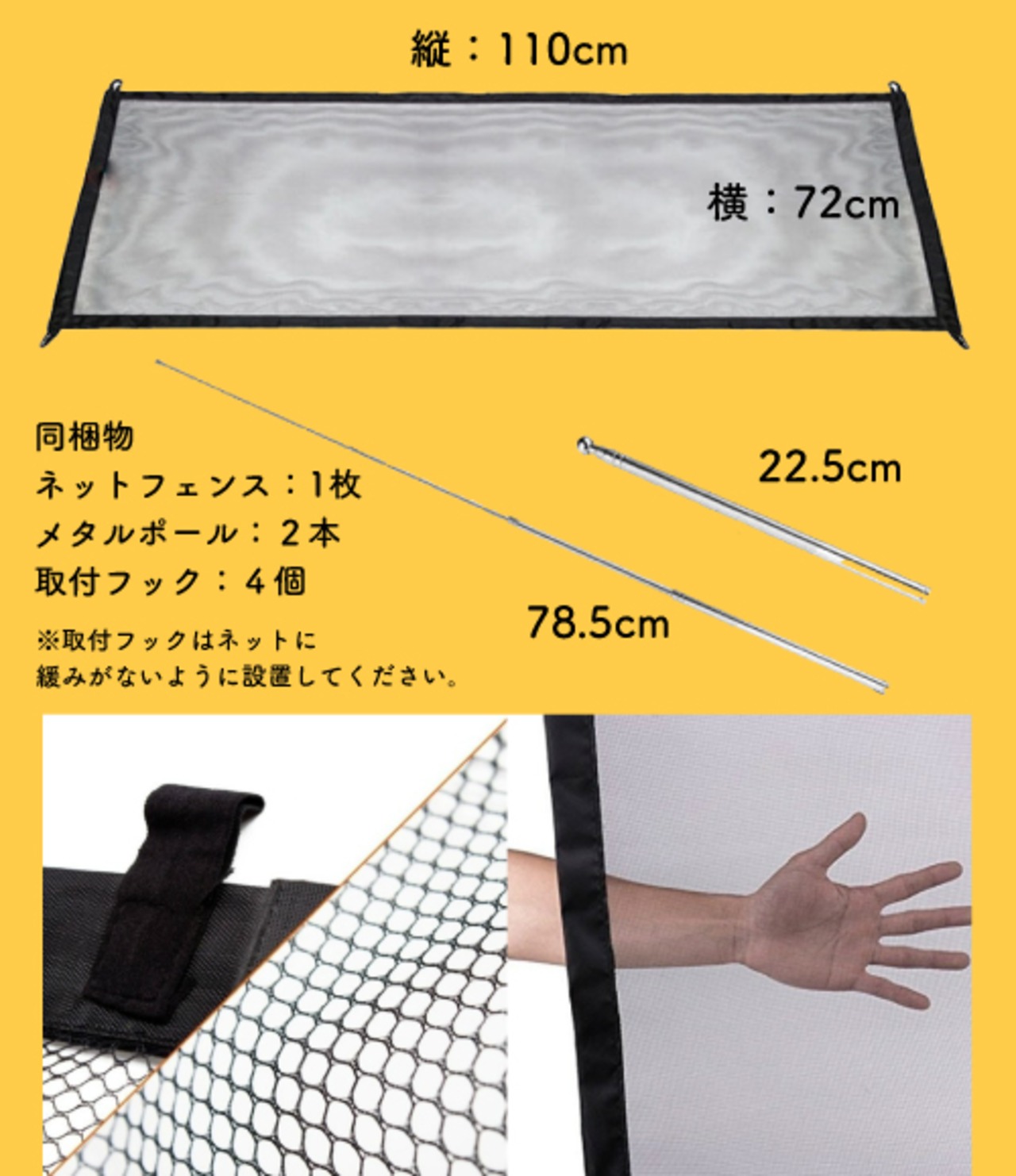 ※取付フックはネットフェンスが緩まないようネットが張る位置に取付してください。