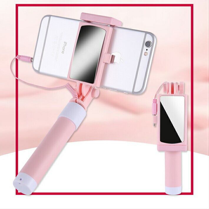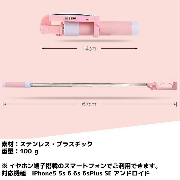 ミラー付き 超小型 じどり棒 自撮り 有線 ミラー付自撮り棒 充電不要 iphone6s Android 対応 スマートフォン用アンドロイド galaxy ギャラクシー イヤホン端子 専用 おしゃれ
