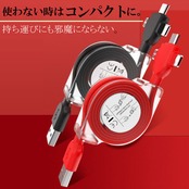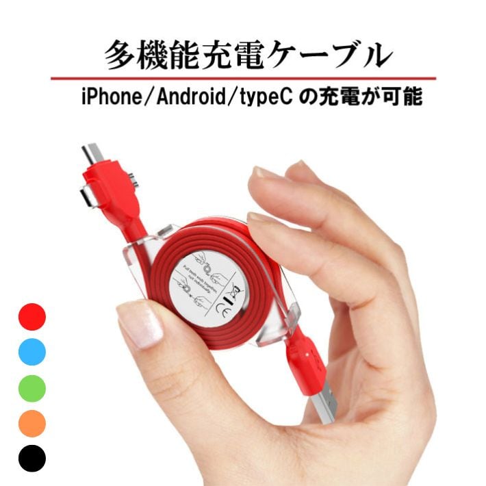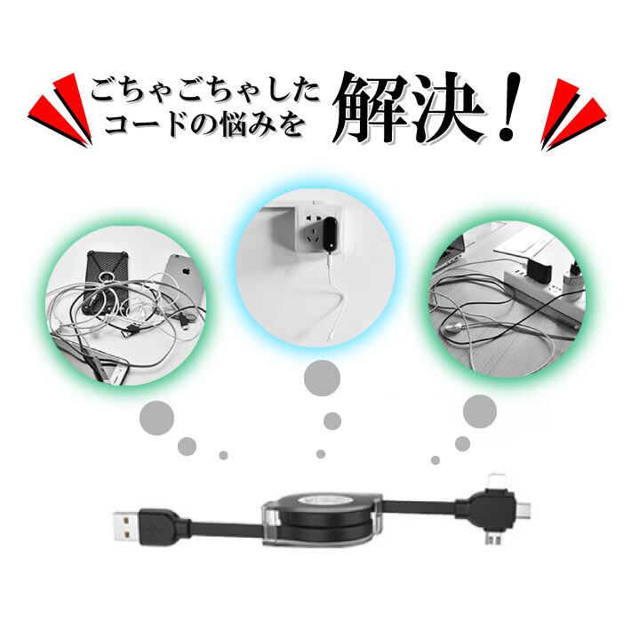 OverFrag 3in1 Micro usb type c 充電ケーブル コードリール式 急速充電 対応 旅行 便利グッズ データ転送 ライトニング バッテリー用 充電コード android アンドロイド 便利 アイテム 出張 おしゃれ プレゼント コンペ 景品