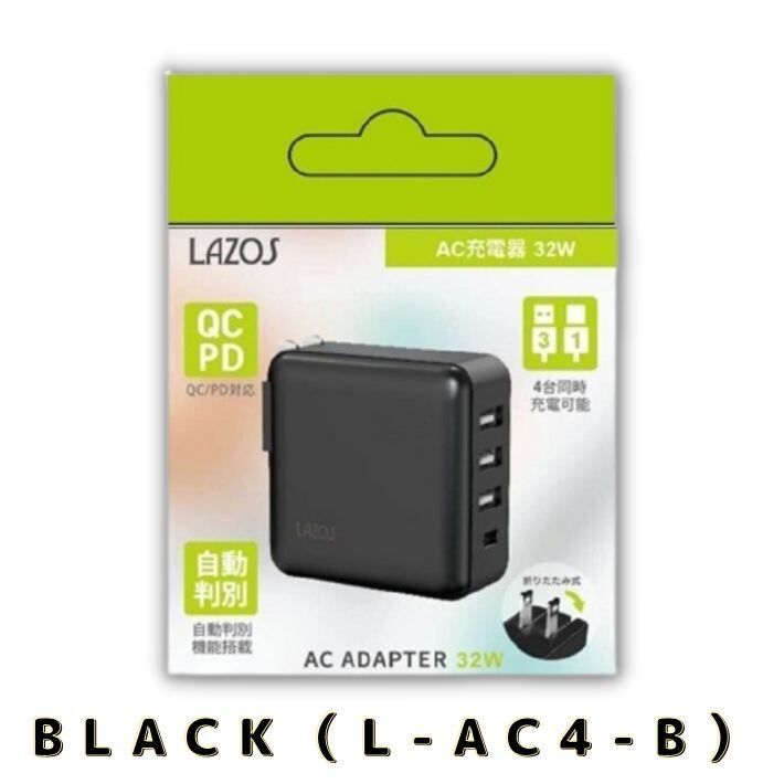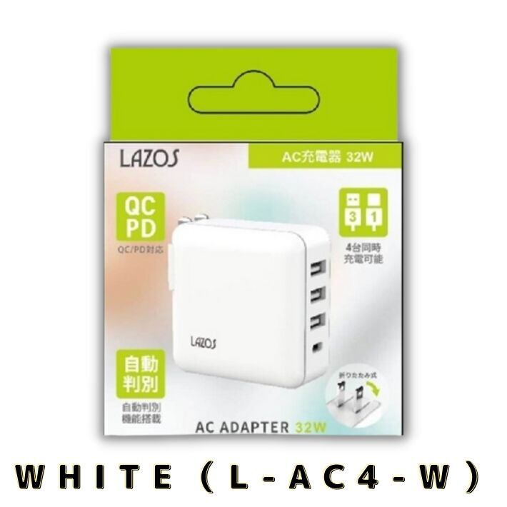 3台同時充電ケーブル 付き usb type-c 急速 ac 4台同時 充電 アダプター コンセント 一体型 家庭用AC L-AC4-W usbハブ iphone 充電器 対応 acアダプター usb ac ギア 便利 グッズ アイテム 人気 最大32W コンパクト テレワーク 旅行 出張 お出かけ 持ち運び プレゼント