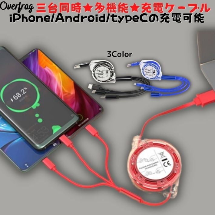 ※3台同時充電ケーブルのカラーは選べますので、お好みのカラーを選択してください。