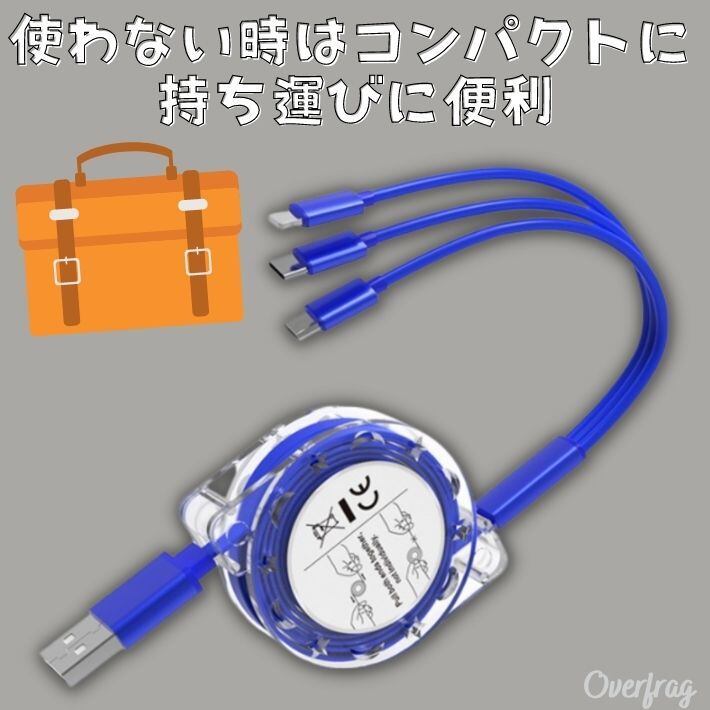 iPhoneケーブル、Micro-USBケーブル、Type-Cケーブルでほぼ全てのiPhone Android や モバイルバッテリー などの充電ができます。