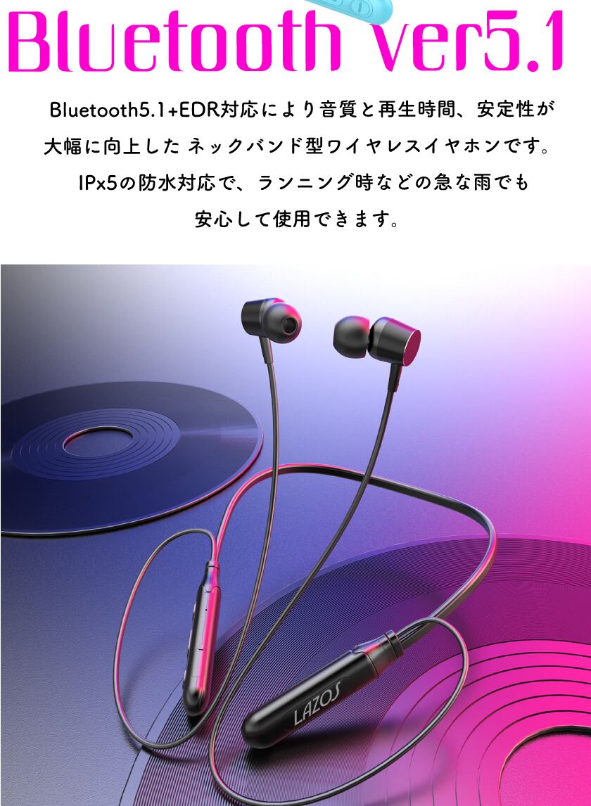 Bluetooth5.1+EDR対応により音質と再生時間、安定性が大幅に向上した ネックバンド型ワイヤレスイヤホンです。