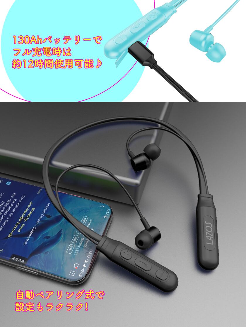 Lazos 最新版 Bluetooth5.1 12時間連続駆動 bluetooth イヤホン ワイヤレスイヤホン IPX5防水 スポーツ 通話 音楽 軽量 高音質 ハンズフリー通話 マイク内蔵 ワイヤレス ブルートゥース 防水防汗 ランニング 両耳 自動ペアリング イヤフォン スマホ用