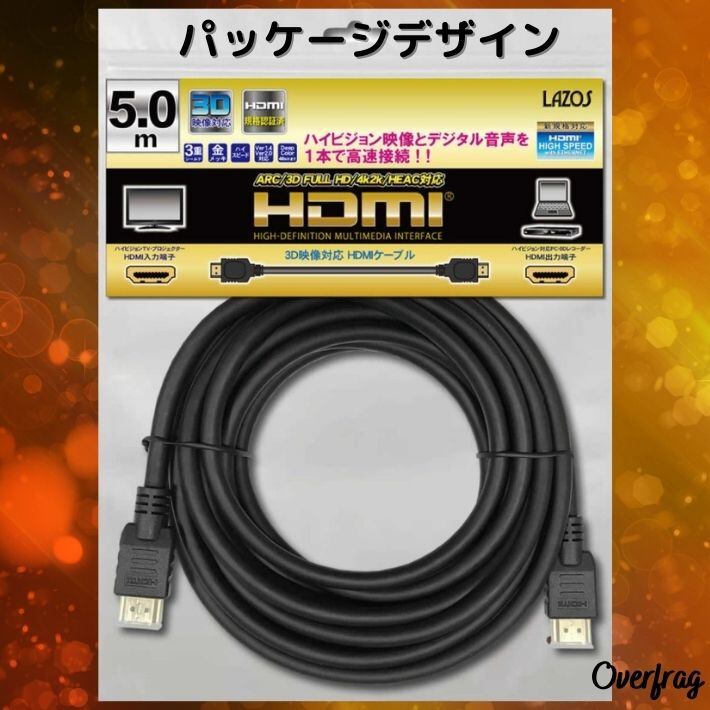 HDMIケーブル 5m HDMI2.0 4K 60Hz ハイスピード 3D映像 3重シールド 金メッキ ニンテンドー switch スイッチ PS3 PS4 PS5 対応 cable テレビ tv プロジェクター カメラ 5.0m 接続 TYPE A オス 3D イーサネット パソコン PC サブモニター 対応 Lazos L-HD5 メール便 送料無料
