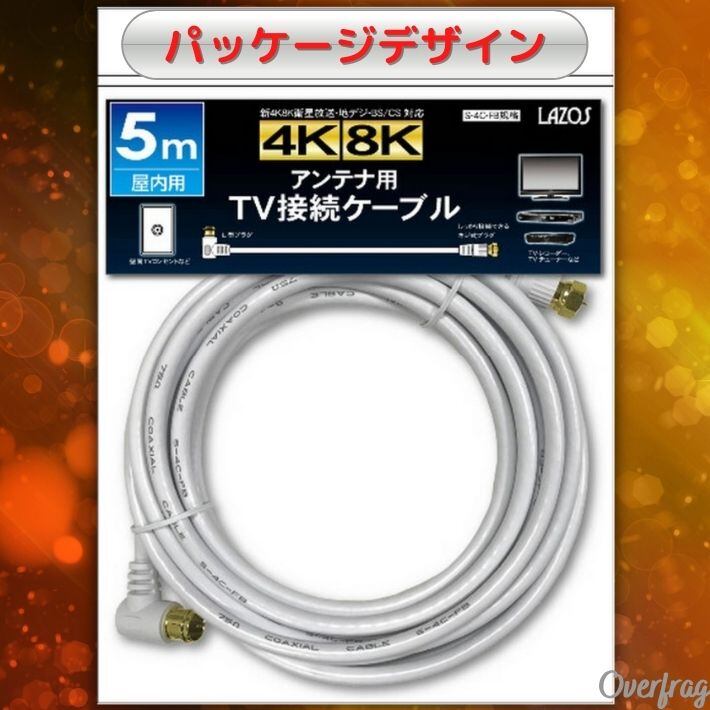 LAZOS アンテナケーブル 5m 4K 8K 地デジ BS CS 対応 S-4C-FB規格 高品質 同軸ケーブル 低減衰ケーブル 4k対応 8K対応 テレビ BS CS 地デジ 衛星放送 アンテナ ケーブル コード TV テレビコード テレビ線 AVケーブル テレビ買い替え 新居 テレワーク 引っ越し 送料無料