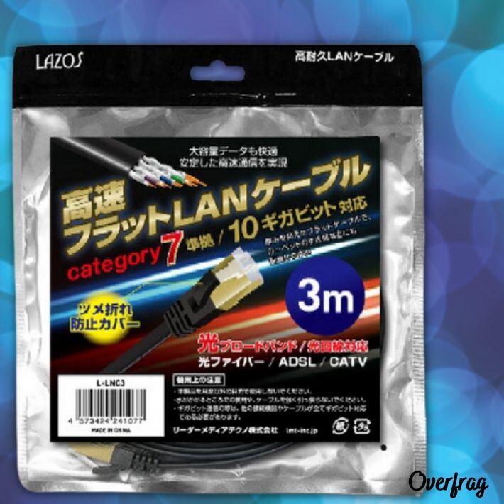 lanケーブル 3m フラット 高速 カテゴリー7 cat7 準拠 大容量 快適 10Gbps 10ギガビット ランケーブル フラットケーブル インターネットケーブル パソコンケーブル pc 回線 オフィス用品 爪折れ防止 黒 ブラック 光ファイバー ADSL CATV 回線 対応 Lazos L-LNC3