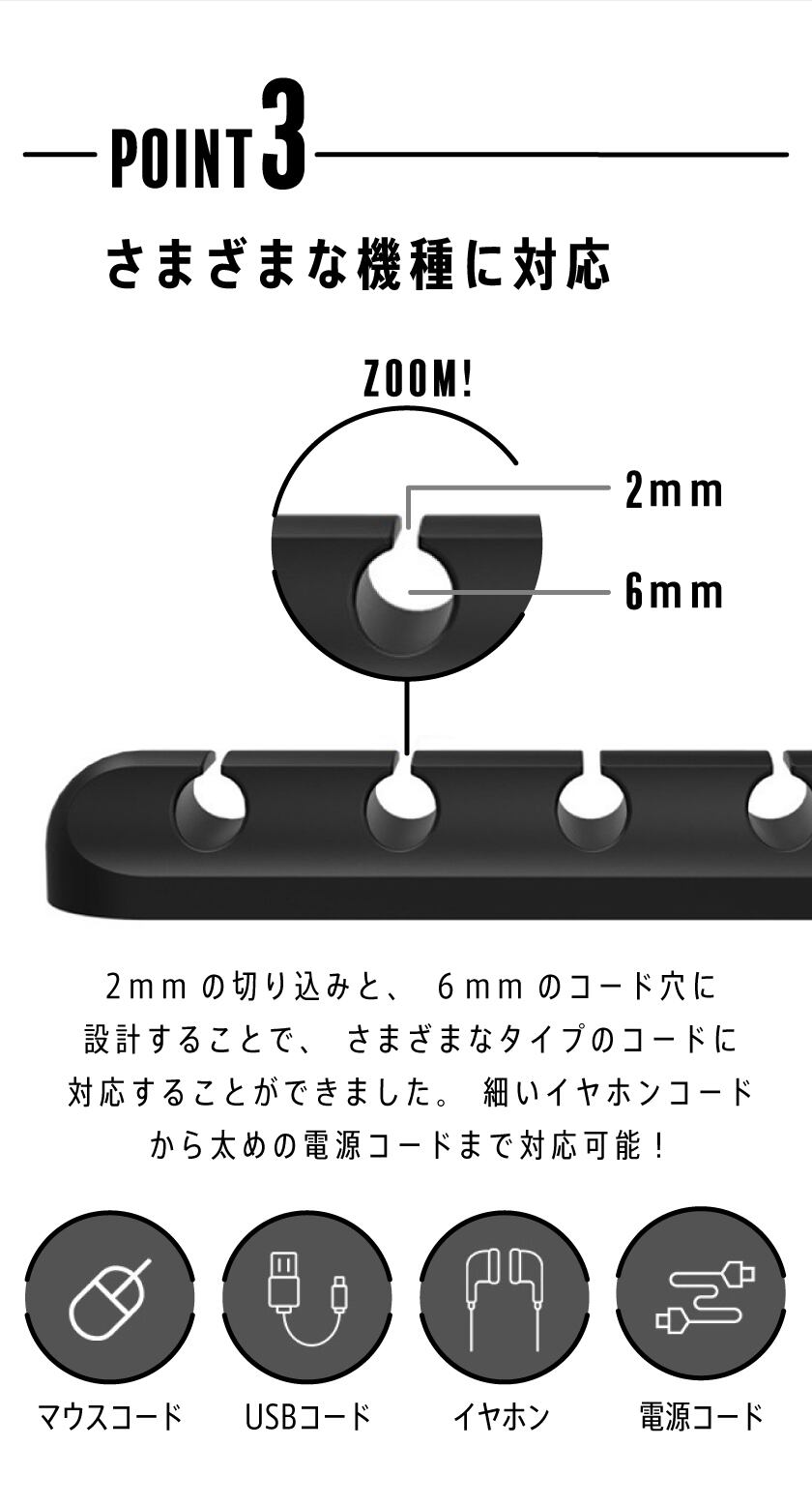 ケーブルホルダー ケーブルクリップ コード 収納 3本 5本 7本 iphone スマートフォン タブレット 車載ホルダ 車載ホルダー 車載用 クリップ まとめる 断線防止 スリム 小 大 便利 充電 デスク 配線クリップ テレワーク グッズ 机上 部屋 整頓