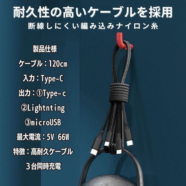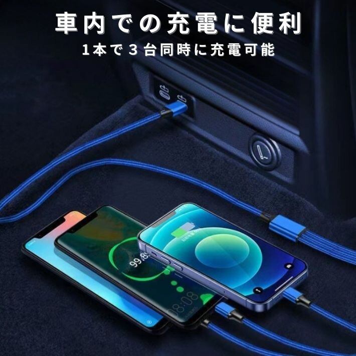 3in1 充電 ケーブル 5A急速充電 同時 充電 充電コード Type-C 充電ケーブル iPhone 高耐久ケーブル USB充電ケーブル 車内充電 テレワーク ライトニングケーブル Type-C マイクロusb iOS Android 同時充電 iPad Macbook 断線 しにくい 1.2m おしゃれ