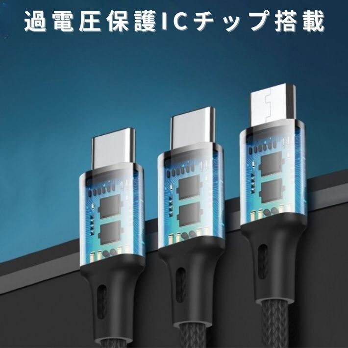 ケーブル 充電 3台同時 ライトニング Type-C Micro USB充電ケーブル 急速充電 最大 6A 120W アンドロイド iPhone 充電ケーブル 高耐久 編組ナイロン Lightning 急速充電 ケーブル断線防止 Apple iPhone 14 13 12 11 Pro Max XS XR X SE2 SE3 Plus iPad