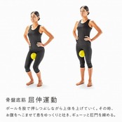 1,仰向けに寝て、膝を曲げ、又にボールをはさむ。ては体の横におき、手のひらを床につける。